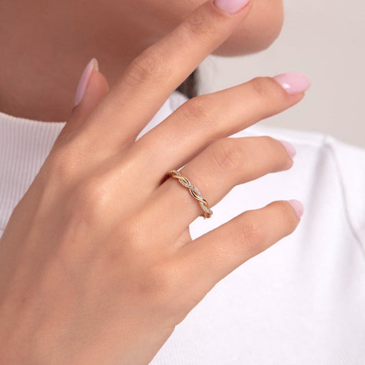 14 Ayar Altın Örgü Infinity Taşlı Yüzük