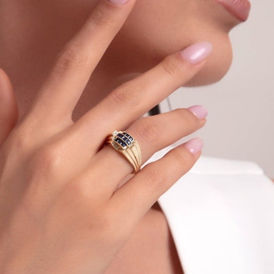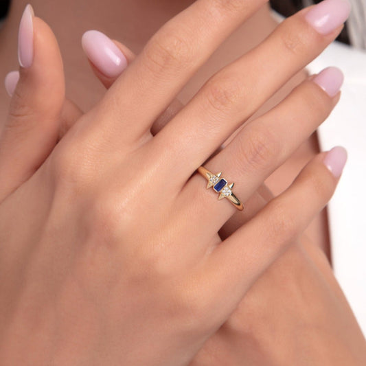 14 Ayar Altın Yüzük | Safir ve Zirkon Taşlı Yüzüğü