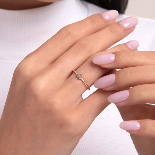 14 Ayar Altın Üçtaş Pırlanta Yüzük - Minimalist ve İnce Tasarım