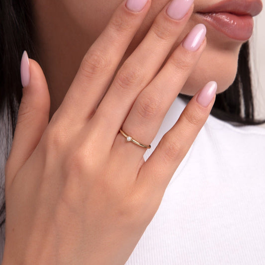 14 Ayar Altın Üç İnci Yüzük - Minimalist ve İnce Tasarım