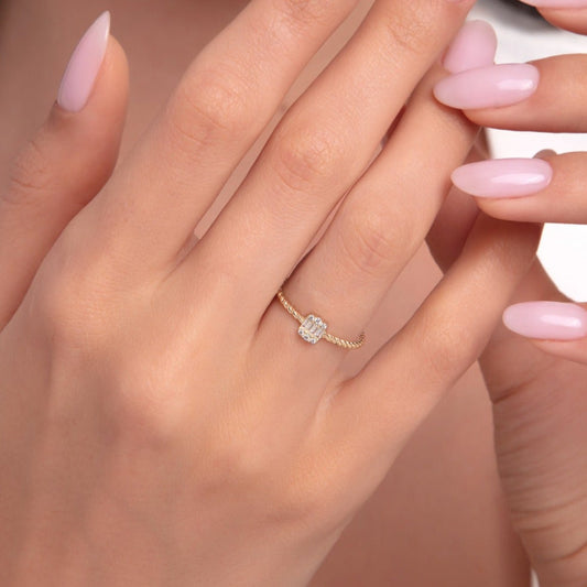 14 Ayar Altın Baget Zirkon Yüzük - Minimalist Burgu Yüzük