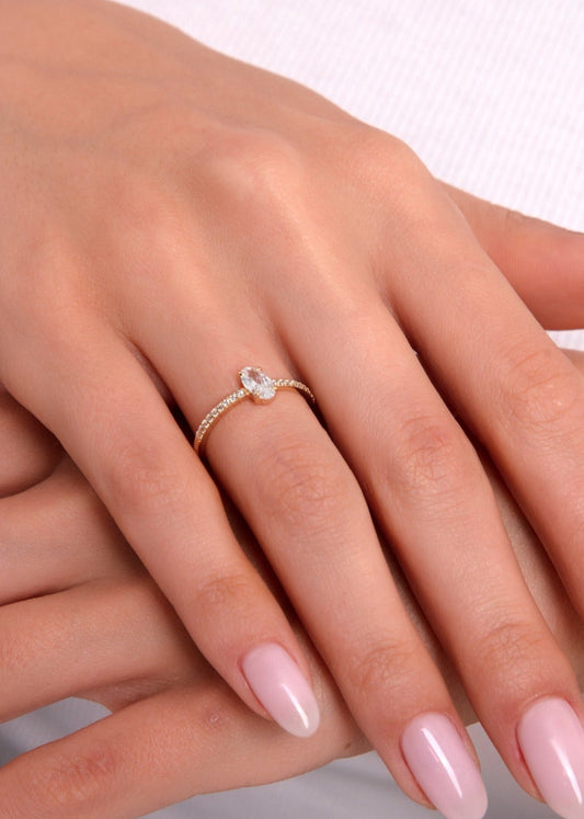 14 Ayar Altın Markiz Form Zirkon Tamtur Yüzük - Zarif ve İnce Tasarım
