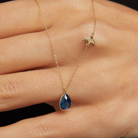 14 Ayar Safir Kuş Altın Kolye - krlmkol104