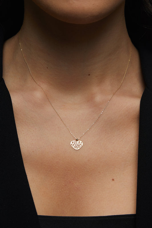 14 Ayar Altın Dorika Kalp Kolye - btklpkol91